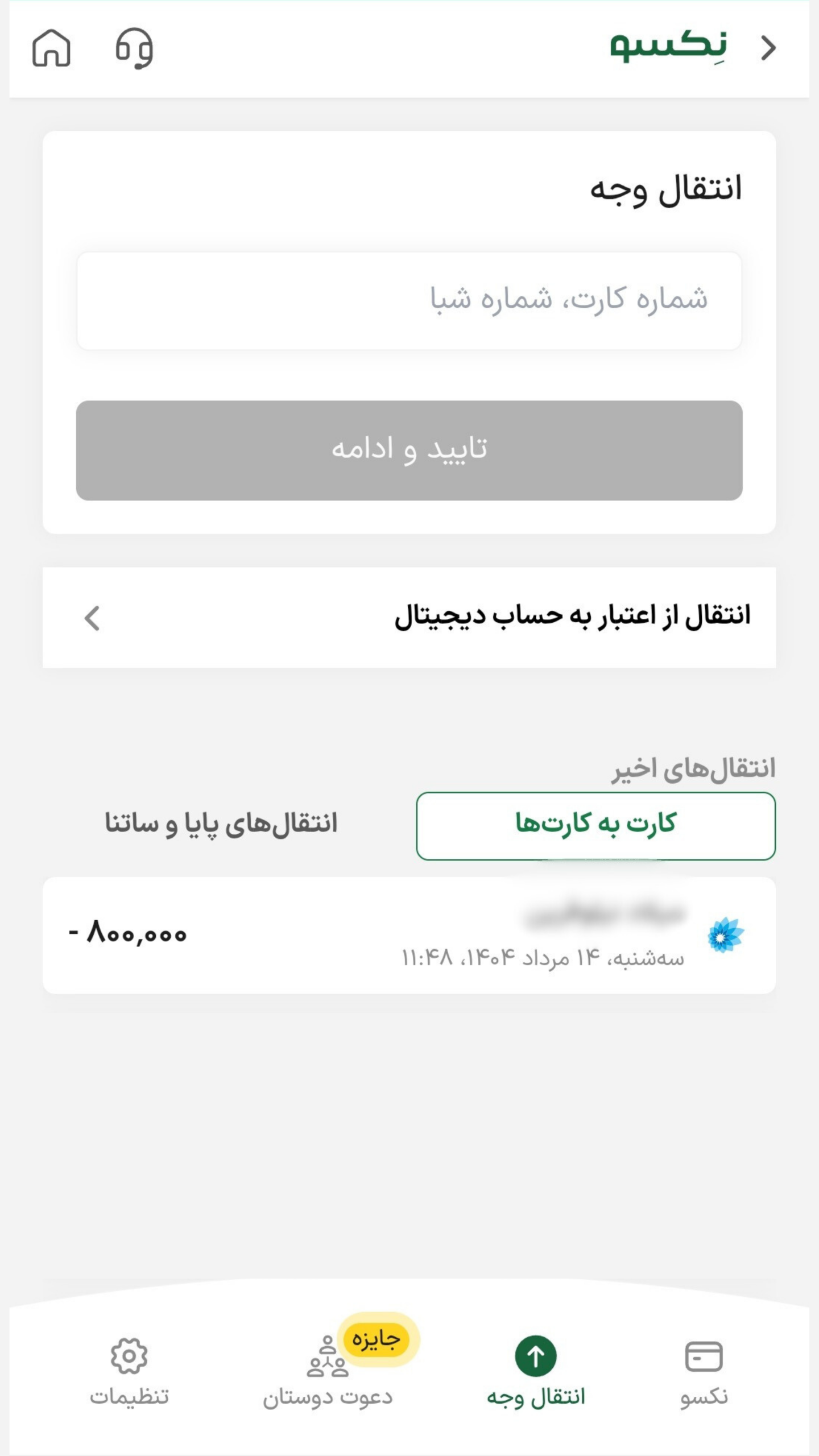 راهنمای گام به گام انتقال وجه از کارت نکسو