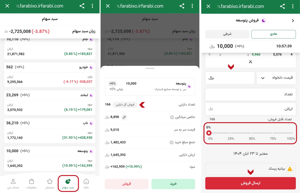 نحوه فروش عرضه اولیه از طریق سامانه فارابیکسو نکست (نسخه موبایل)