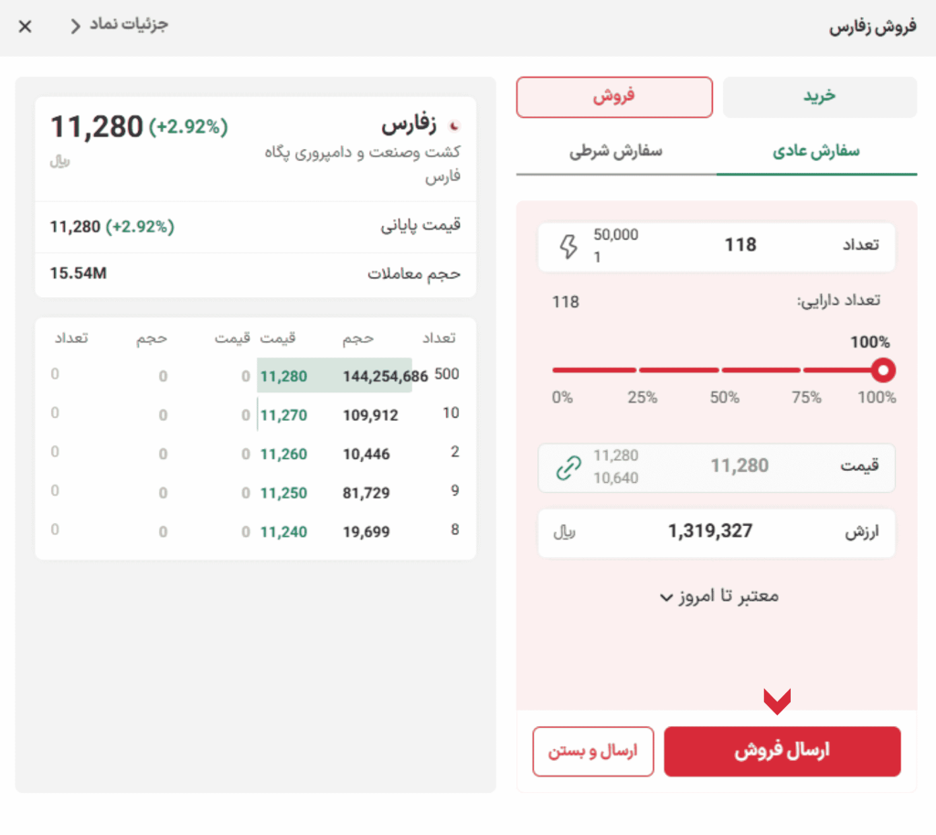 با انتخاب گزینه ارسال فروش سفارش شما در سامانه ثبت میشود.