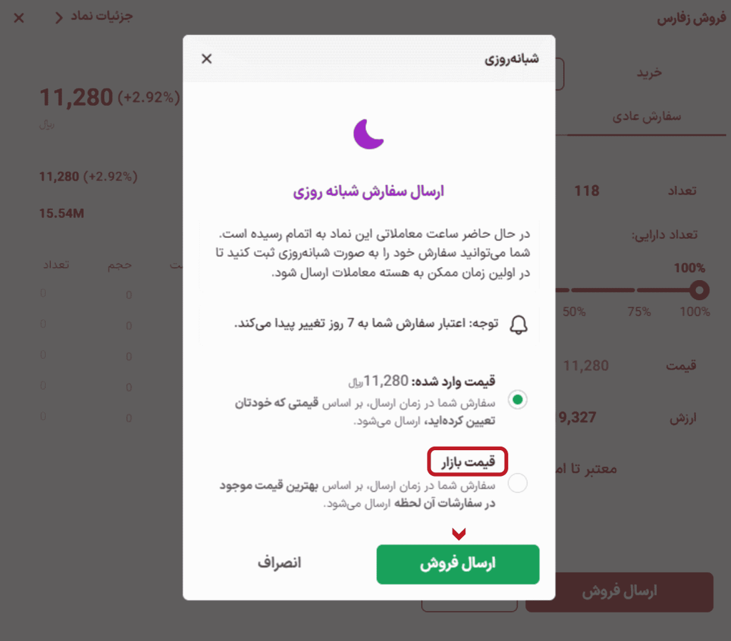 ثبت سفارش در زمان غیر معاملاتی(شبانه روزی):
