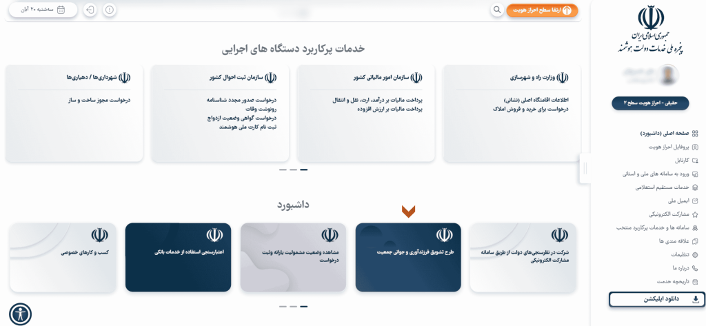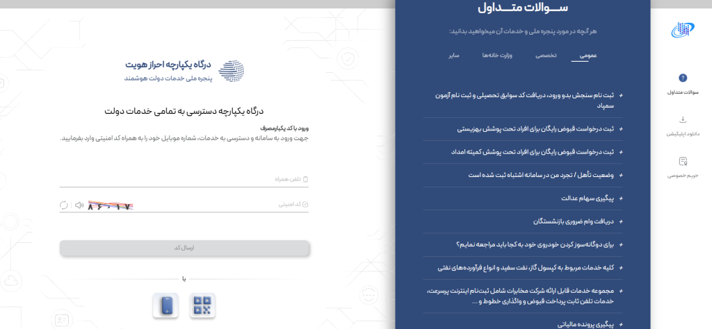 ۱- ورود به پنجره ملی خدمات دولت هوشمند