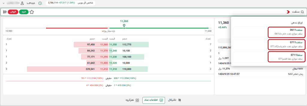نماد مربوط به اوراق سلف نفت را در سامانه جستوجو کرده و وارد صفحه نماد شوید.